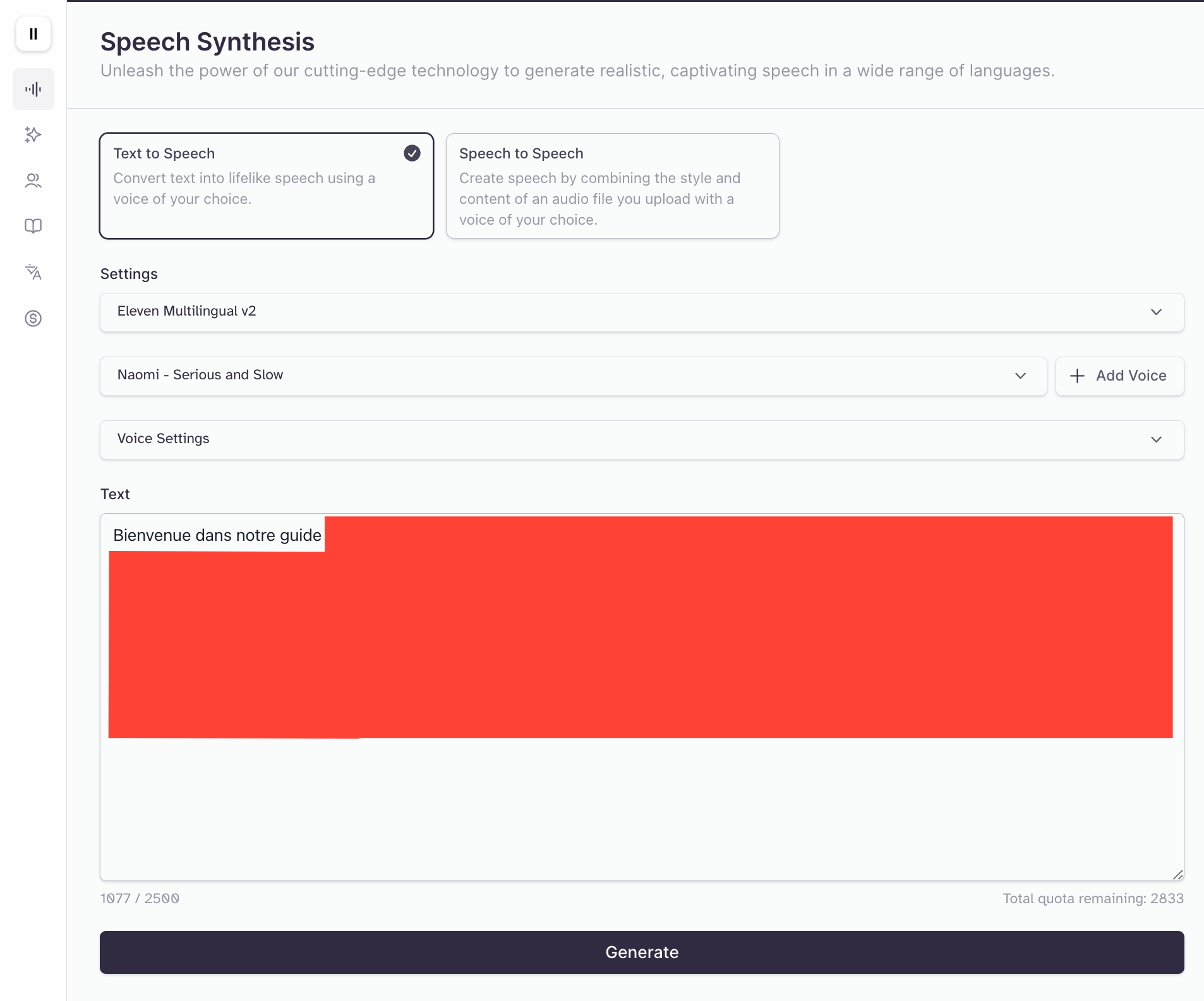 Tu peux également créer un projet si tu souhaites générer la même voix sur toutes tes vidéos. Tu as la possibilité de faire un script dans la langue de ton choix. Ainsi, si ta clientèle est en France mais aussi à l'étranger, tu poux créer des contenus audios en anglais pour toucher une audience internationale.
