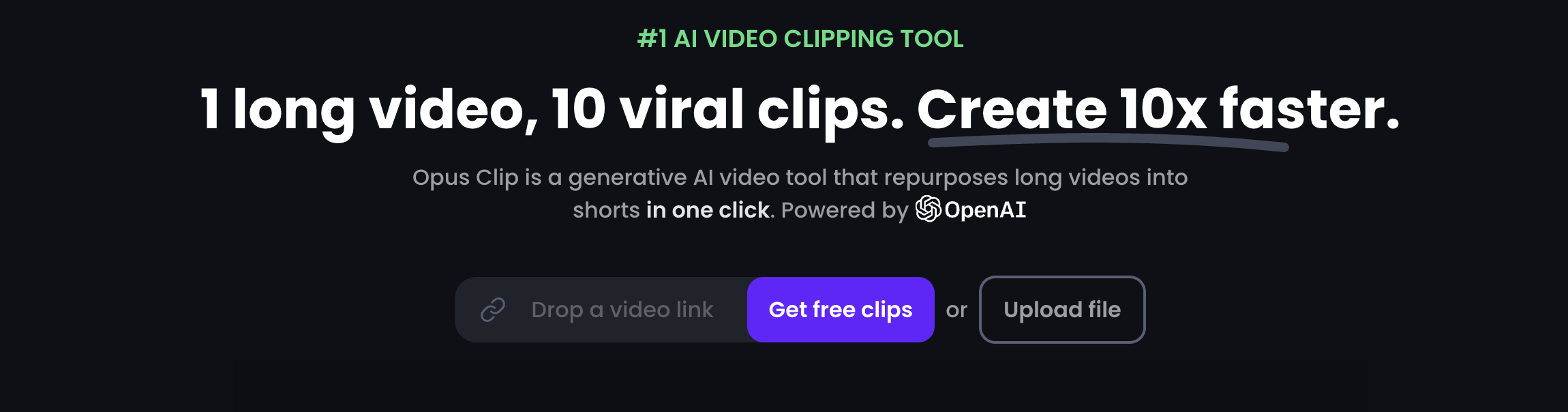 En parlant de shorts, OpusClip va te permettre de faire des shorts directement en renseignant seulement le fichier vidéo ou le lien youtube de ta vidéo. L'IA va créer des cuts et faire des shorts impactants ( entre 8 a 10 shorts) pour une vidéo de 30 minutes. Si tu ne souhaites pas faire tes shorts manuellement par manque de temps ou par manque de compétence de montage, c'est vraiment l'outil qui te faut.