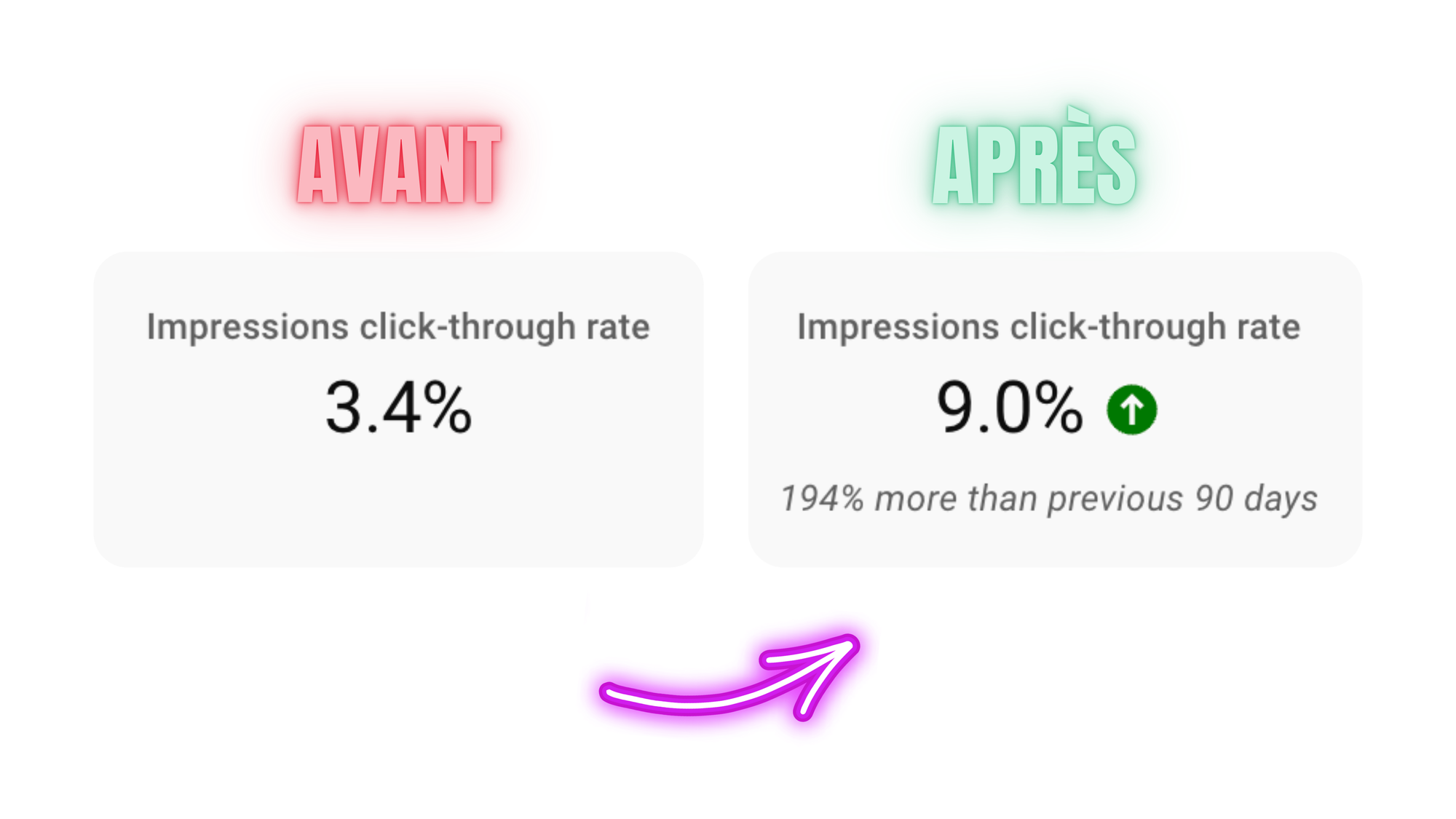 Bref, adapte ta miniature au contenu spécifique de ta vidéo et tu pourras obtenir ces avants/après.