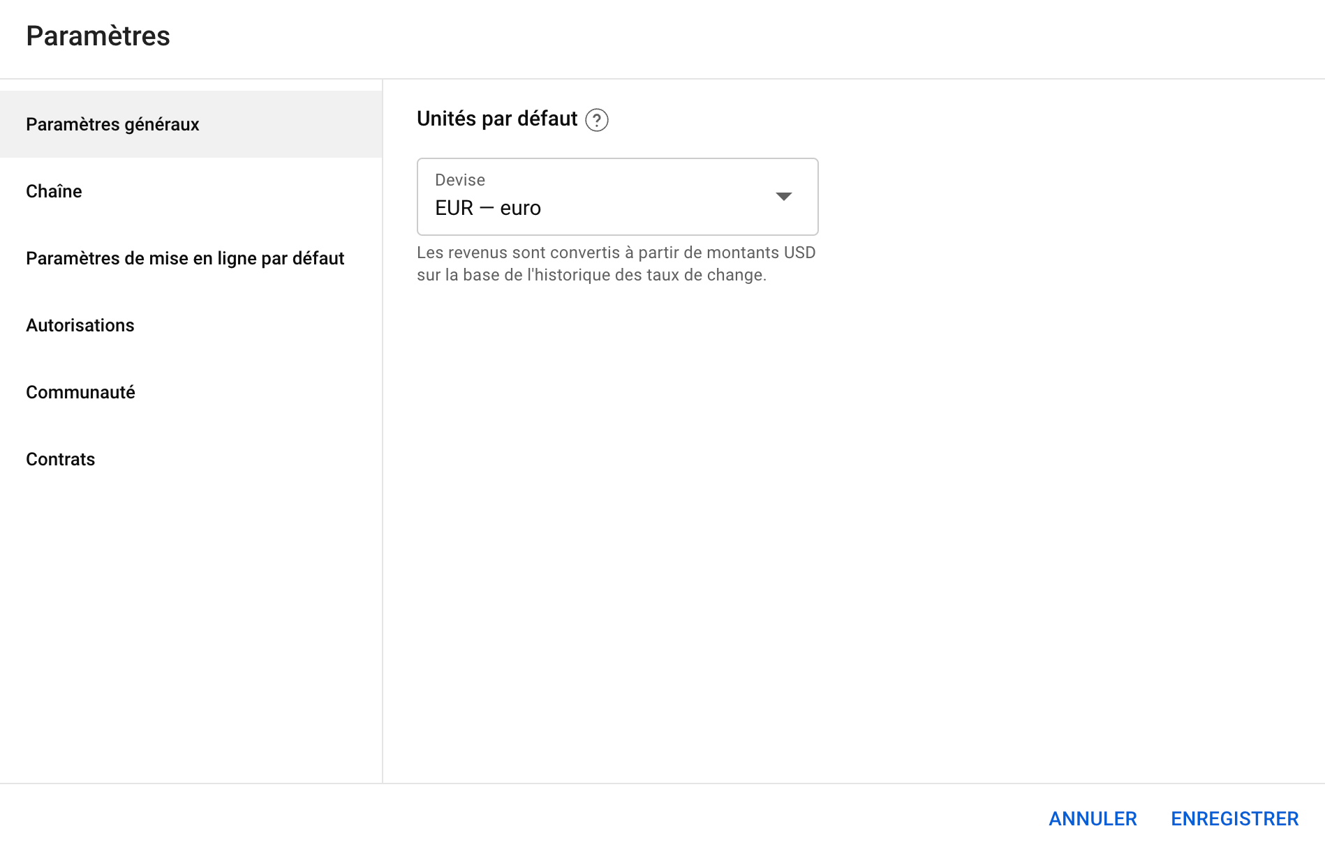 Définis bien ta devise en EUR, c'est important si un jour ta chaine est monétisée.